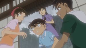تبدأ القصة بظهور الشخصية الرئيسية سينشي كودو ذو السبعة عشر عامًا، وهو طالب في المدرسة الثانوية ومتحرٍ يساعد الشرطة والمفتش ميغوري في حل بعض القضايا، مشهور بذكائه وعبقريته التي تُفاجئ الجميع باستنتاجات تخالف التوقعات. وفي يوم من أيام العطلة خرج مع صديقة طفولته ران موري إلى مدينة الملاهي، وحدثت جريمة قتل داخل الأفعوانية وحلها كالعادة بذكائه ومهارته، وبينما كانوا هناك لمح سينشي كودو رجلًا ذو ملابس سوداء يقوم بعملية ابتزاز. فأراد معرفة القصة، فما لبث إلا أن ضُرب من الخلف وسقط مغشيًا عليه، ومن ثم أُجبر على تناول عقار جديد، لم يستخدم من قبل إلا على الفئران وظن الرجل ذو اللباس الأسود أنه سيقتله ولن يترك فيه أثرًا للتسمم لكن العقار السام تسبب في تقلص جسده ليصبح فتًى في السابعة من عمره. تلك الحادثة التي وقعت في مدينة الملاهي تسببت بولادة بطل المسلسل كونان إيدوجاوا وتغير حياة سينشي كودو.